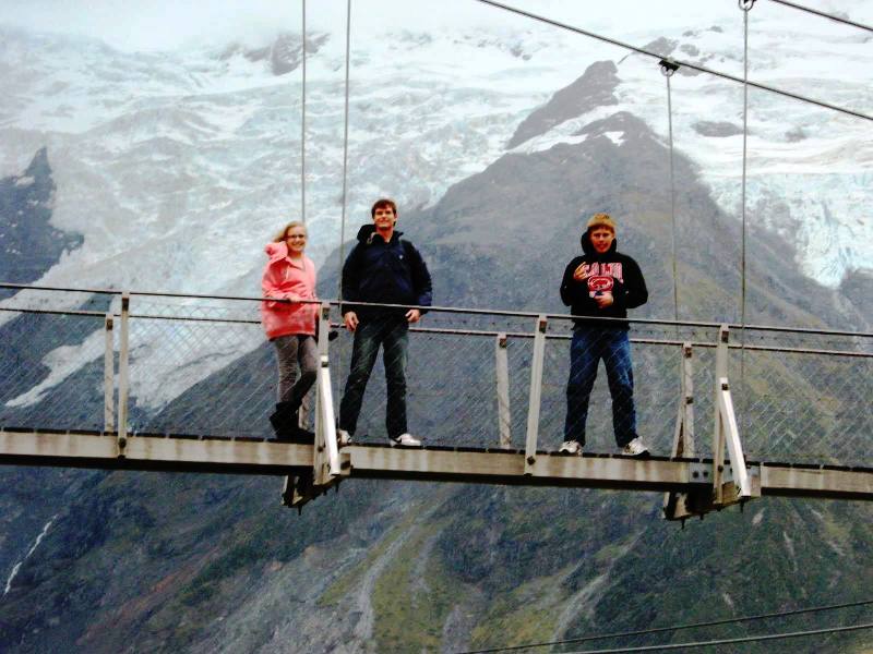 | Two exciting suspension bridges lead alongside the fearsome Hooker River amid stunning alpine scenery and avalanches. |