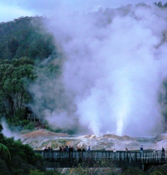 This takes us past a wide range of different volcanoes, steaming pits, calderas, geothermal & hydro power stations and vast barren desert plains laid down by ejected material over scores of millennia. Much of the area has been planted with timber producing pine trees and there are areas of native forests available to explore.