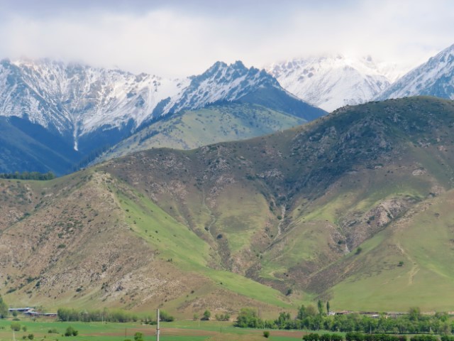 Lake Issyk Kul, snow alps forests & glaciers,