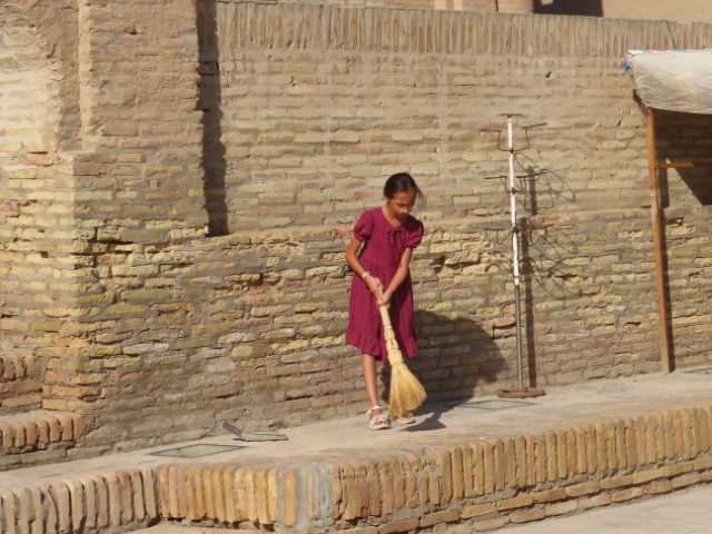 By mid day the temp was fast approaching the 39deg and exploring the wonderful sights inside the old 2500 yr old Silk Road trading city became a challenge. Note Today, this UNESCO World Heritage area is recently restored and under continual maintenance. Rainfall of just 20mm yearly enables the use of mud and straw for a lot of the constructions despite freezing winters. 0545 Exploring routine in the cool 23 deg
