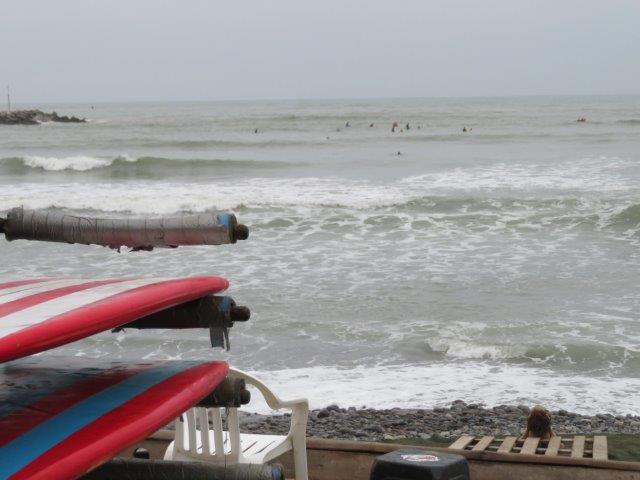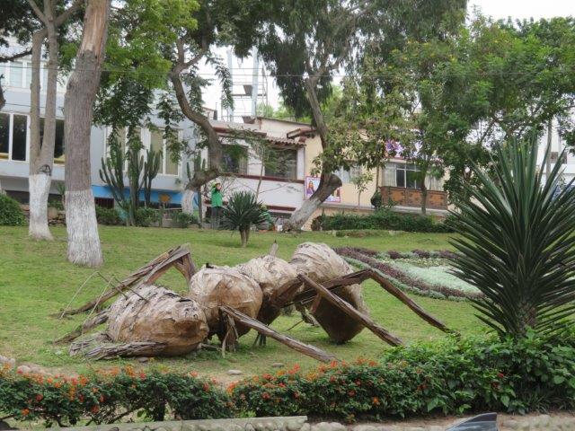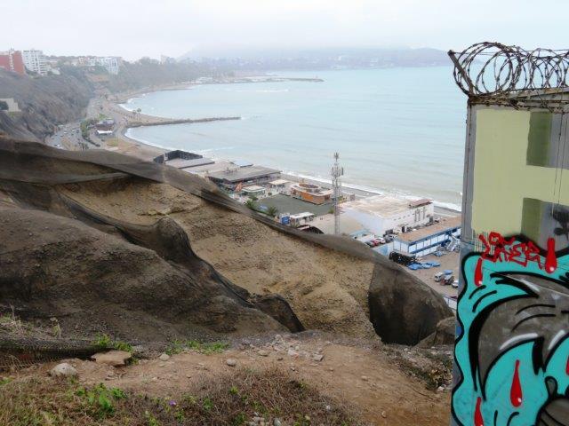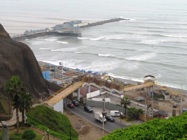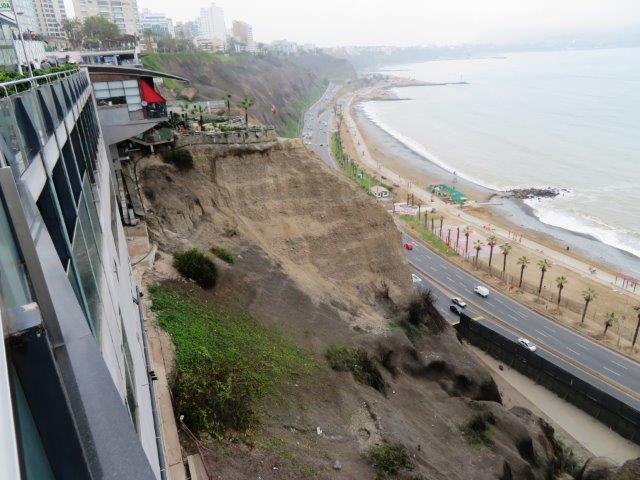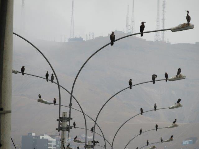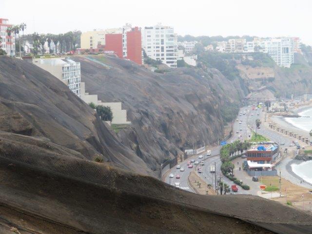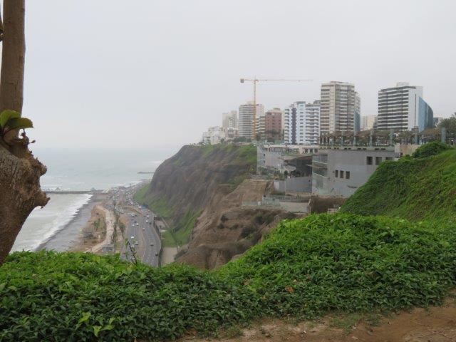 Lima Flight from Auckland in new 787. had 3 seats so lay down to sleep but not many z's in the 12 hrs to Santiago. Nice staff and good meals. Landed 6am by the watch then found it was 2pm local time (Still Wednesday). - 3 hours wait then 4 hours to Lima arriving 7pm by the watch then found it was 5pm local time (still Wednesday). Met at the bustling airport by the taxi man and co-driver then a 45 min thrill ride through the chaotic city traffic. Poor van only had 3rd & 4th gear used. Red (hot) clutch, lots of pinking & tooting. Really nice boutique style hotel - staff fine, rested then walked to the sea- back by 9pm local time (Wednesday) - shattered. Glad to have the jackets and jerseys. It's not tropical or sunny, as expected. Thursday 0930 big breakfast then took to the coast again. All day for the local attractions especially the steep unstable coastal cliff with the towers on top.