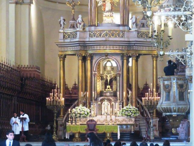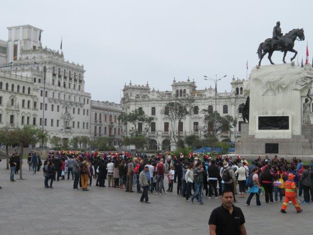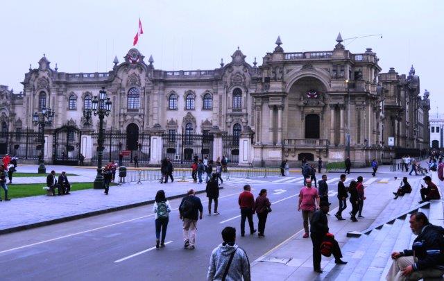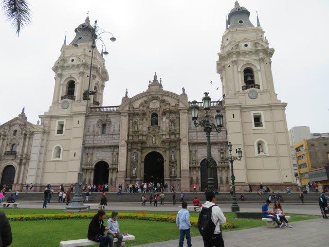 one side of the plaza is the Cathedral of Lima, which houses the