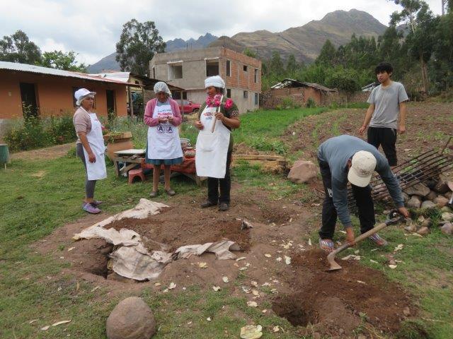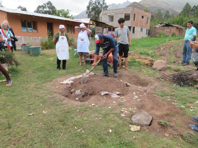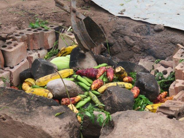 Laying down a meal in earth oven