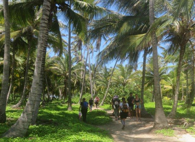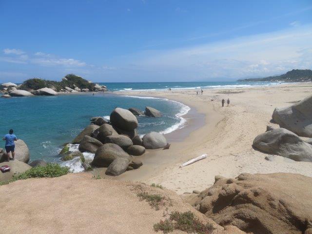 Tayrona National Park Head to Tayrona National Park, a protected plot of wilderness encircled by the massive Santa Marta mountain range on one side and the picture-perfect Caribbean on the other. There's a fair amount of hiking involved today, so be prepared and make sure your walking shoes are on (bug spray will also come in handy). It's a solid hour or two to hike to the first beach, with a few up and down parts, and if it rains it may get a little muddy here and there. The reward, however, is not only the superb beaches but the hike itself. The ambience of the jungle, the verdant scenery and the first glimpse of the sea make for a magical day out among nature. The hiking is flexible; you can hike more or less, depending on your wishes and energy levels. The hike to stunning Cabo San Juan is well worth the effort; it's further away than some other beaches however highly recommended. Note that it's not possible to swim at all beaches, as the ocean rip can be strong. When it's all over, we head back to Guachaca for the night. Hot humid tropical weather, Rain in the evening Nice cooled lunch and great swim