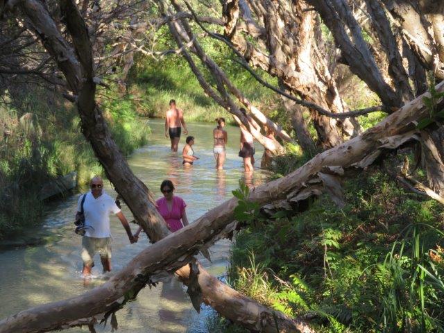 Arrived on time and met up with Alethea & John who kindly organised a dinner with the teachers and partners from their tour group. It was a great reunion and an honour to see them all again. Stayed a night near an airport hotel then picked up the van Tuesday and headed north taking time at points of interest on the way. Found there was an extra day as the cuzies were delayed so took it with a day tour to Fraser Island - the big local tourist attraction. Quite nice way to fill in the time then on for a 2 hour drive in the dark to Bundaberg in the dark. EEK!! Watching out for wayward roos but all was well and met up with the cuzies sleeping in the van for the first night. I woke up frozen after from 2 am but sorted that out at the next stop - under a bridge at Emerald. Fine with an extra blanket It has taken time to get the phone internet laptop and podcasts working Number +614 7313 9770 It's dark at 5 and light at 6 am and very cold until about 10 am then its lovely. We aim to start driving at 6am and finish at 3 pm. Covered 1100 km do date and aiming to keep under 500 / day to avoid fatigue. The cuzies' bus is a bit slow so we separate and meet up again later - the cost of luxury compared to the campervan which needs a different way of doing things I am still working on. I have a few minutes to write this at a camp site beside a lake (Teresa Dam) 12 noon the weather feels just lovely, warm, calm and quiet. Now off for a hot shower then a walk while the cuzies are out kayaking and bird watching on the lake. ☺