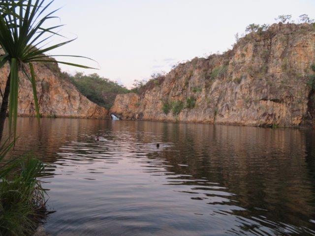 Bob & Sheena did the Butterfly Gorge walk 4.5 hours and I net them at the first view point for some sunrise pics. Replenished supplies in Katherine then off to Edith falls only 80km away. Just squeezed in as Sheena kindly paid my fee to get the last place. This is supposed to be the cool time for the locals - its soo hot into the high 30s balmy nights - then its all over till 6am when the dawn stirs. Re designed my itinerary because the V8s are in Darwin for the coming W/E and the place is packed out. Now heading to Broome for the next 9 days then maybe catch up with the cuzzies as they take a more leisurely plan. Katherine Gorge (below)