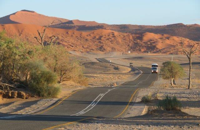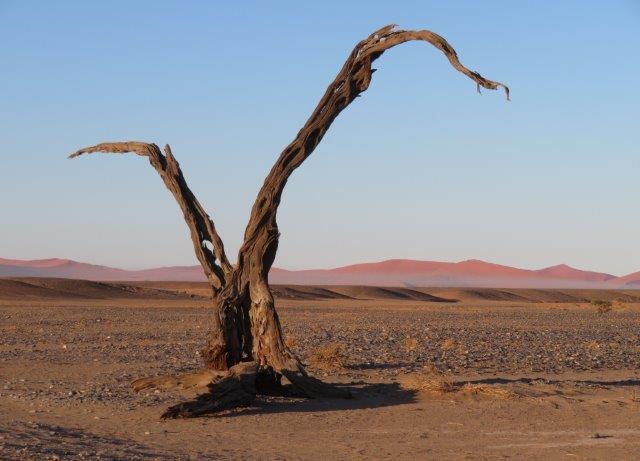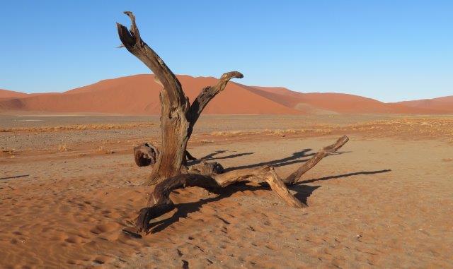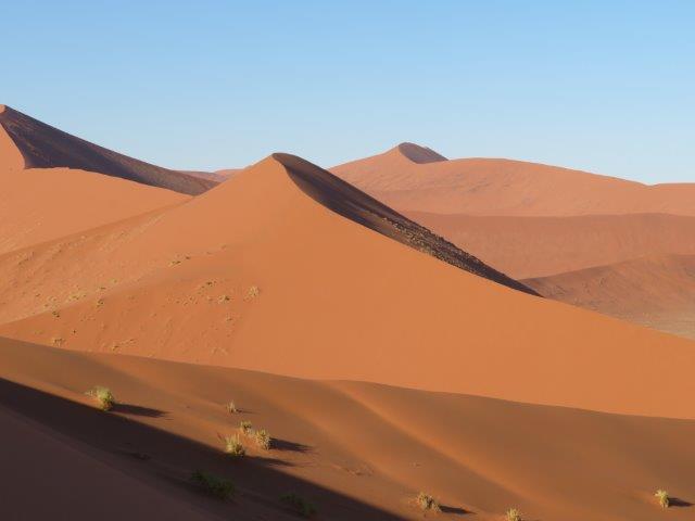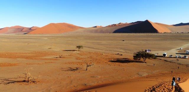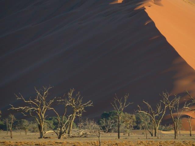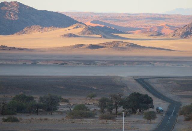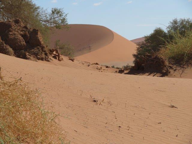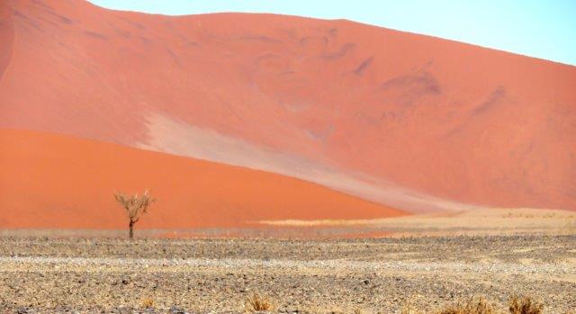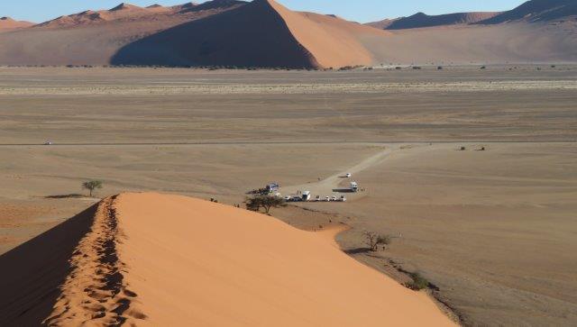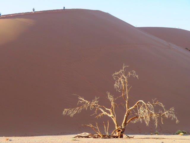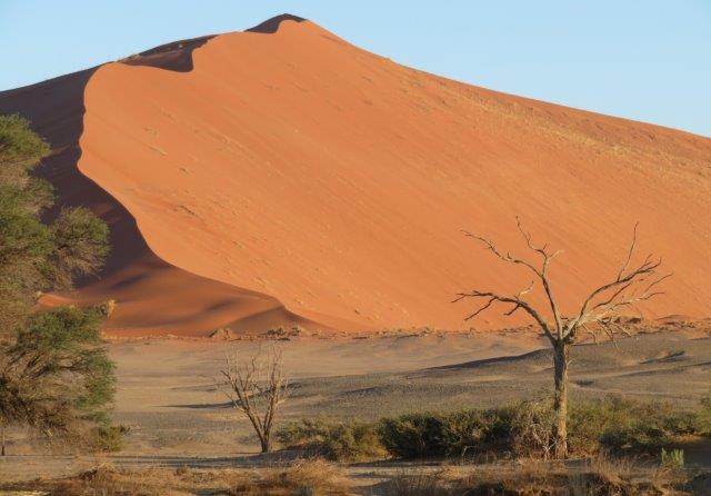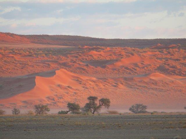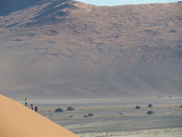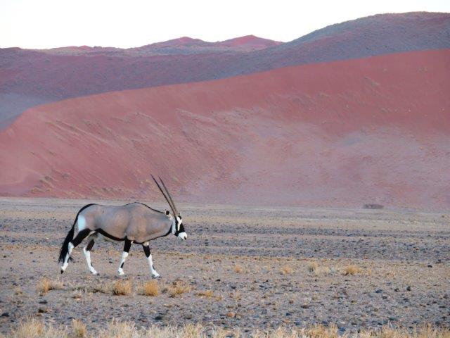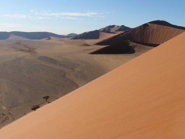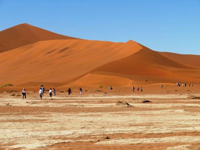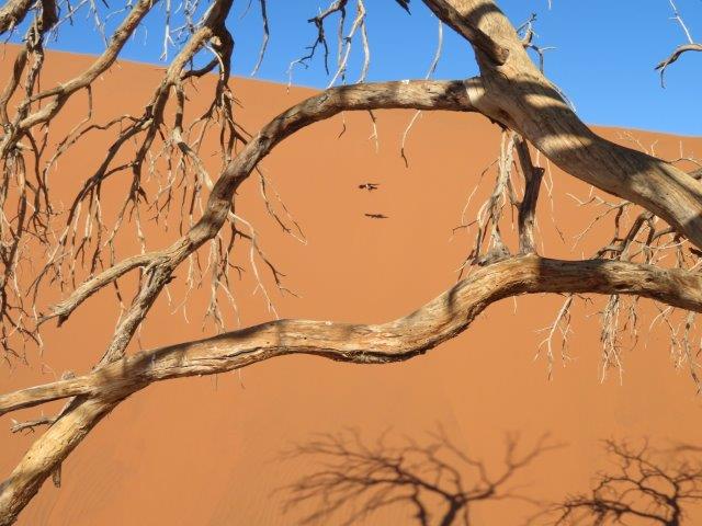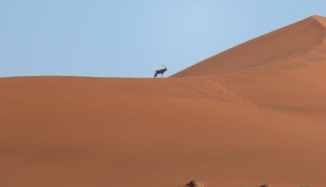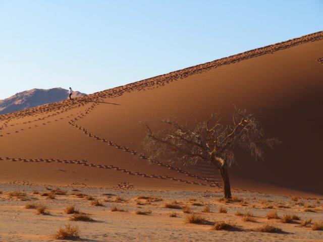 FRI 12 – Namib Naukluft Desert Park This was a WOW of a day starting with an early 6am breakfast and 21 km of gravel. Re fuelled at Sesriem at the park entrance, then drove 61km of sealed road ending with 5km on a shuttle to Sossusvlei. The Joy was definitely in the journey. They say this is one of the world's oldest deserts and has the highest dunes. Temp began at a nice 18 deg (and rose to 36 deg by early afternoon where the additional feature, Sesriem Canyon ended the adventure and back for an eagerly anticipated cool beer, plate of soup shower and a rest.