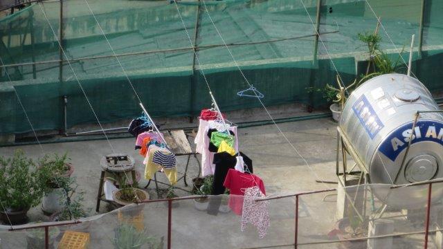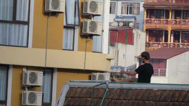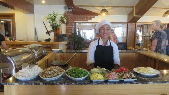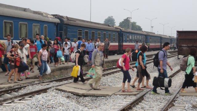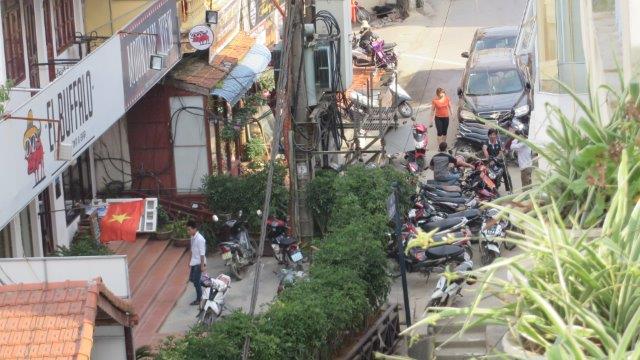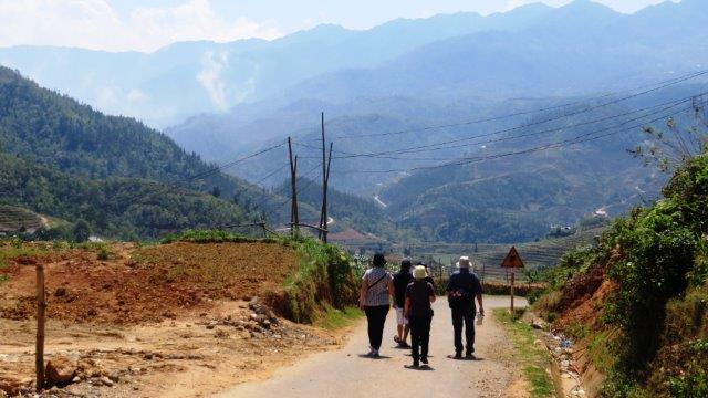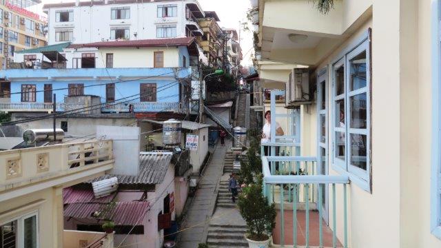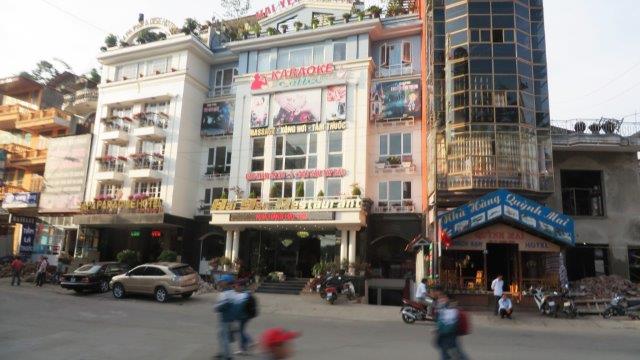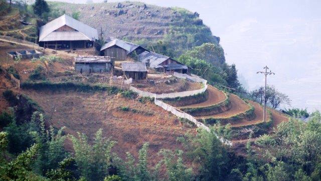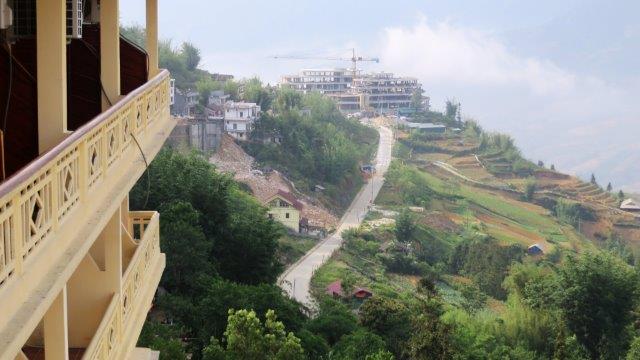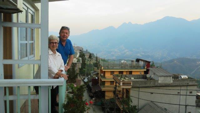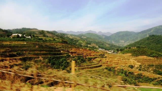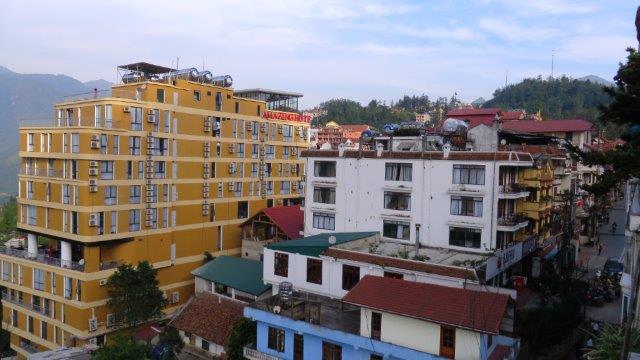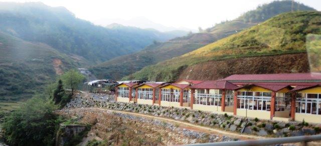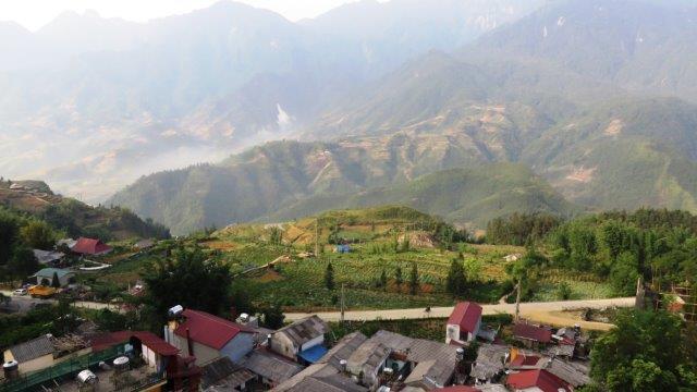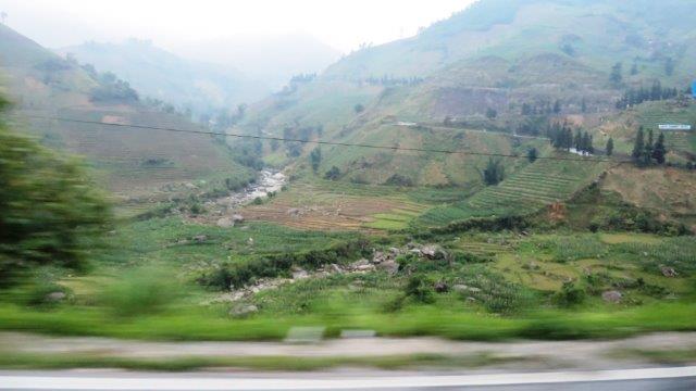 from the station up a steady climb to Sapa at 1650m. A hard start as we were straight into exploring without a shower. still hot and humid - lovely drive in a Merc 13 seat van up to 1650m - roads resembling ours between Franz & Fox - breakfast - left luggage got a few pics from the restaurant before travelling on - No shower - eek!!! - rooms not ready at 9 am. The town was
