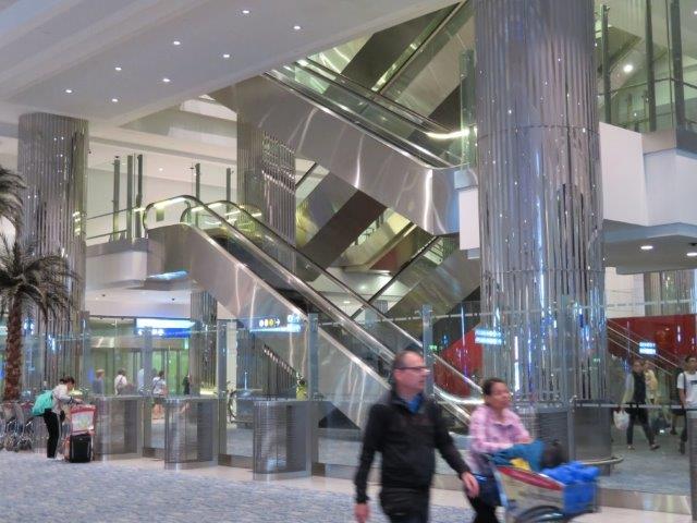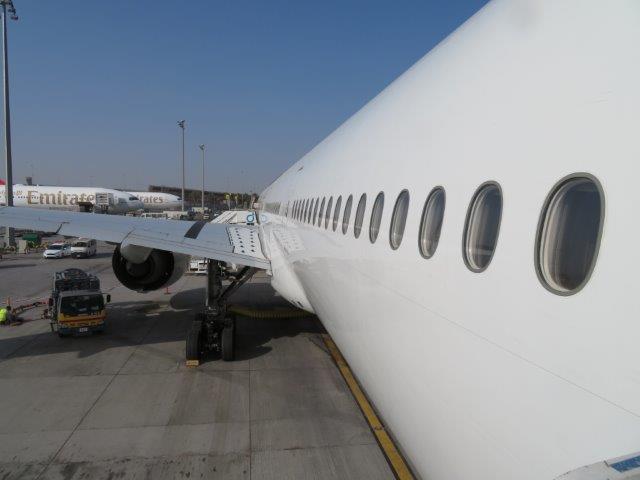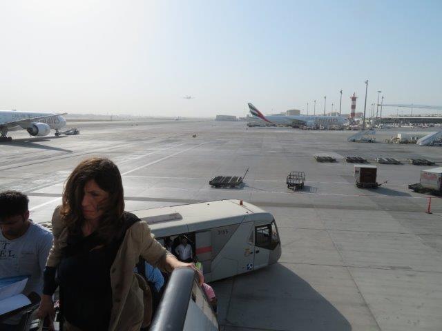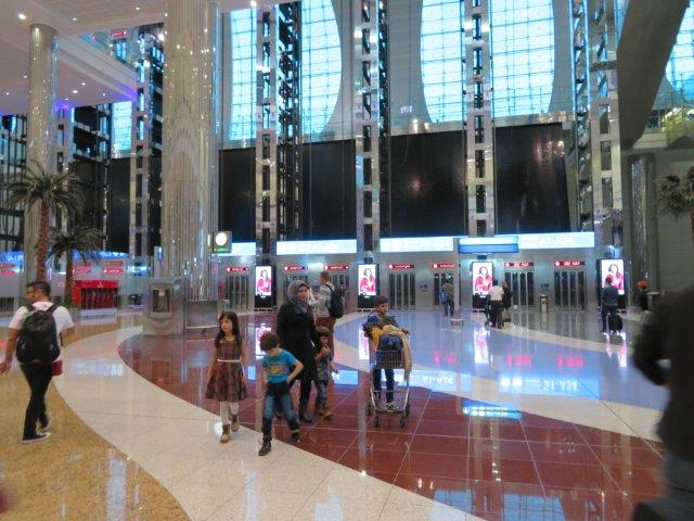 Thu 4 May Travel to Dubai Was great to catch up with Martin, Anne and the 4 kids before they boarded their plane for the start of their adventure. The horibulis 14 hour night flight from Sydney is over!! and now waiting in Dubai airport at 7am; its huge as was the full 480 seat A380 plane. The plane had a great range of entertainment, nice Ausi couple for company, watched only one movie, some TV and podcasts. Noise cancelling head phones were great. Good meals and friendly staff. - Possibly 4 hours sleep - had to struggle to get a a window then it was over a wing - but wow, what huge one - and it transformed into some alien monster when the plane touched down. Temp outside this morning 6am was a mere 31deg. Very easy to get around the terminals and find the well marked gates. It's a huge duty free shopping mall with gates. Queues for the (mens') loos - the 1st, 1st. Couldn't see the Muscat connection but asked and the attendant simply put the b/pass in a laser and up it came. Must be a unimportant flight to be absent from all the departure information boards. Only a (B777)