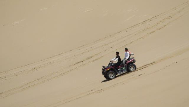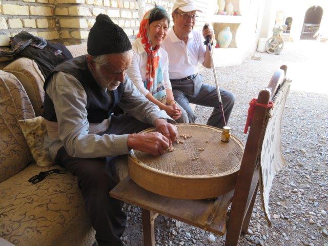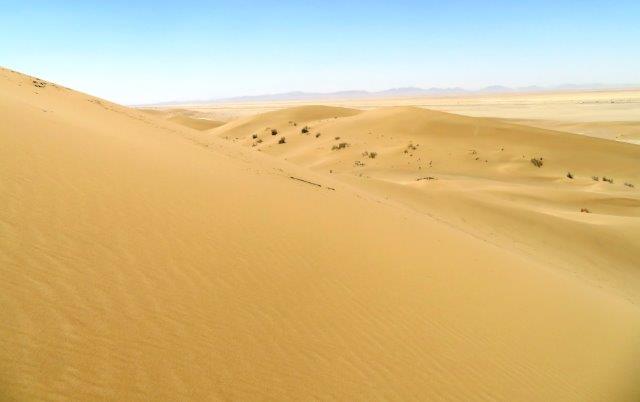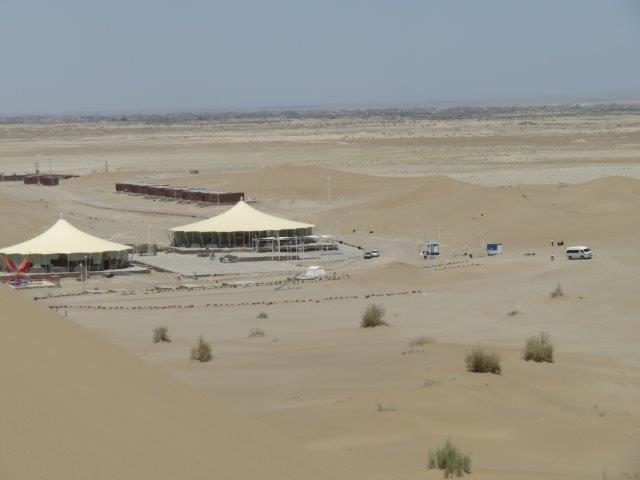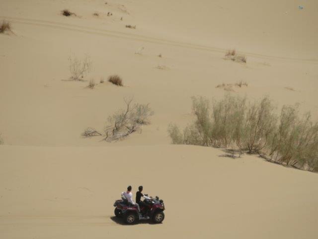 their traditional houses will welcome you. So far there has been nothing to fear in this country. People are always friendly and those who approach us have not done so with the intent pressure us into buy. They are keen to welcome us to their community and ask us where we are from. A local said "everything is forbidden and anything is possible". Can't get Facebook and ByeOil :-( but Wikipedia and yiran are there. Wi-Fi is generally ok at most places but available time is a problem sometimes as sleep comes first. Today we travelled about 300k - temp about 32deg. One highlight was the break at a desert camp and a walk up the sand dunes. At times the sand was unbearably hot around the feet however kneeling with them out for a minute gave enough relief to go a bit further. Nice refreshing breeze at the top. Petrol is about 80c / lt. Restaurant meals about NZ$8-10 Shop takeaway roll of nice stuff about $2. Lots of varieties of dried fruits and nuts to nibble on fill in for meals not really needed. In the balmy evening took a long walk into find the river that runs through the city. Seemed to have taken a wrong direction for a start so checked the phone map & asked a local got back on track and arrived back at the hotel too late.