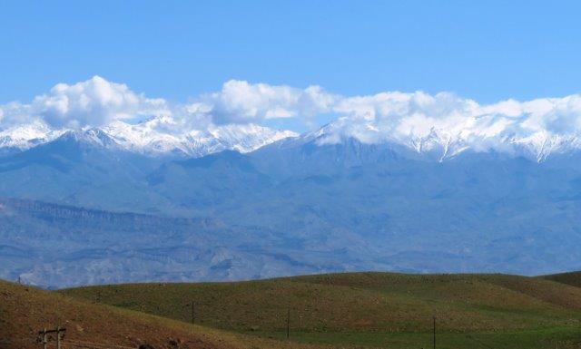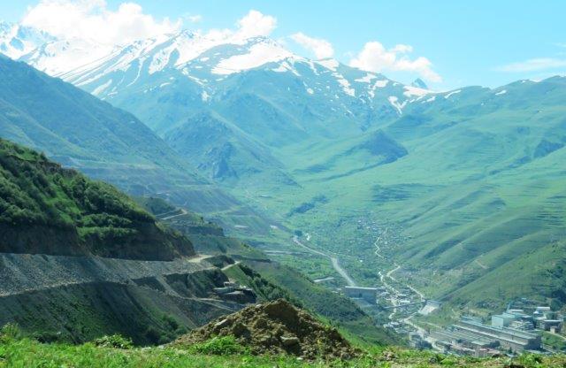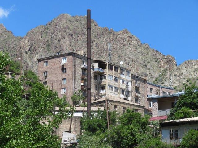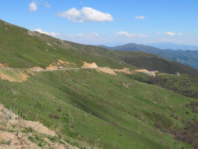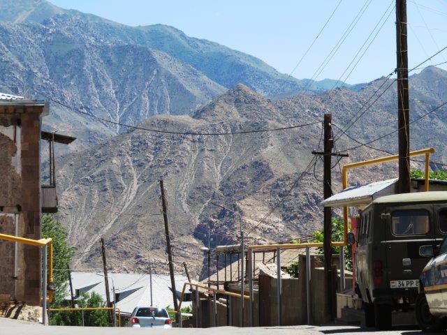 We travel through the Zangezour Mountains enjoying breathtaking views and a brief visit to the town of Meghri. At Goris (pics) we inspect troglodyte dwellings in the surrounding peaks before being welcomed with a hearty dinner and overnight at our hotel. In Iran, I just couldn't get the currency and its conversion values. They called them riyals, and a million of them was about 13 USD. Counting the 0s (without the commas) on the notes never seemed to work right as some merchants used another currency name (tomas) and these needed a 0 removed from the 5 or 6 0s on the notes. A pile of hundreds of thousands would disappear very quickly. On the last night I entered a busy shop to buy an ice cream with the last of the Iranian notes and explained my intention - not knowing if I had enough to purchase the aforesaid item. The very kindly ice cream man apparently misunderstanding my dilemma and insisted on giving me the ice cream and not taking the last of my (Iranian) money. He wouldn't even let me put it in (what looked a bit like) a charity box. It was a laugh for the onlookers too, so, to maintain peace, I humbly thanked him left and bought a hand full of nuts with the cash a another shop. Nice ice cream though. After the the long, tedious boarder crossing formalities were completed the ladies removed their scarves. The border we crossed was clearly identified with a significant river, military buildings and a fence. Officials at the crossing were stern and unfriendly. We walked across to a new driver, guide and more roomy new vehicle. Soon one learned the people of Armenia are certainly very different with different background, religions, language, food, politics, architecture, economy and body features. Lunch was refreshingly different and some of us enjoyed with our first a glass of beer. Had a quick look at byeoil site for the first time in 10 days and that too was a thrill. Unfortunately the photos are unable to portray the grandeur of the ever changing landscapes.