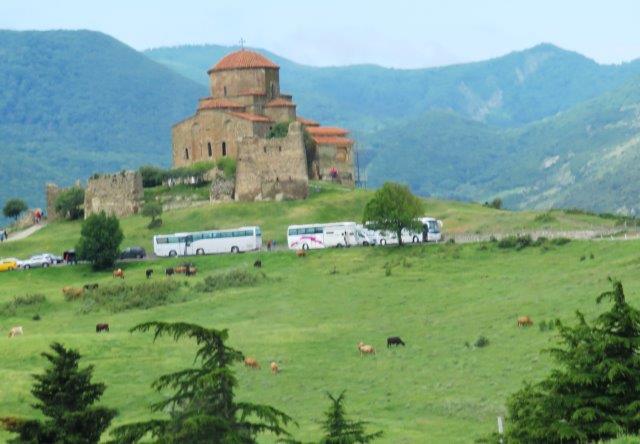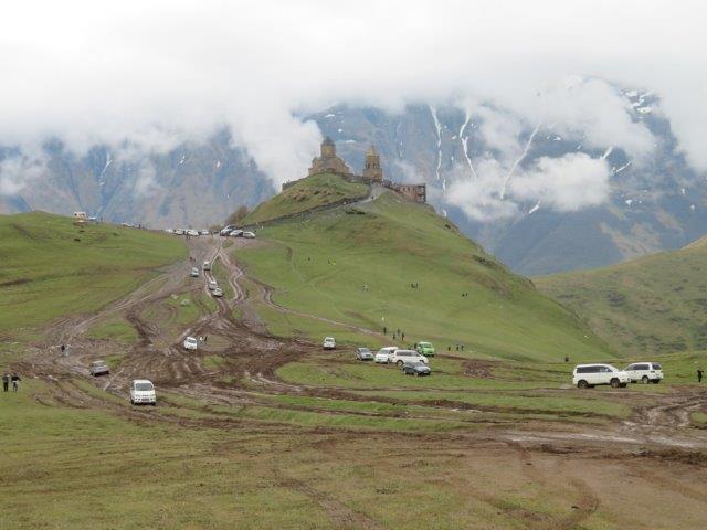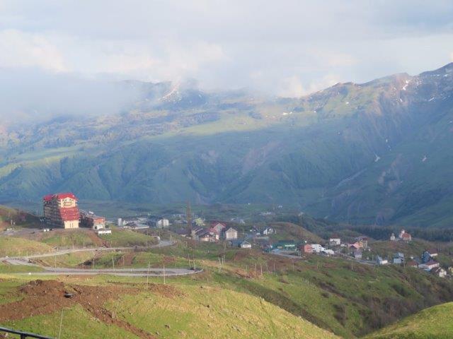 Mtskheta. It’s an early start today as we make our way to Georgia’s ancient capital, Mtskheta (pics) where we visit the UNESCO World Heritage site of Jvari Church and Svetitskhoveli Cathedral dating from the 5th century AD. We then follow the Georgian Military Highway to Kazbegi village (pics) which shares its name with one of the highest mountains of the Caucasus. On reaching Kasbegi, we enjoy an easy hike through breathtaking surrounds to Trinity Church (pics) which is nestled on a nearby hilltop, where, weather permitting, we will witness excellent views of snow-capped Mt Kazkek volcano) (5033 metres). Today added a new experience with the mountains and alpine passes. Tourists definitely like to visit this country. It is sad to see the pristine alpine land chopped up by so many visitors. Rubbish (mainly plastic bags and bottles) is everywhere. Nice new ski resort hotel.