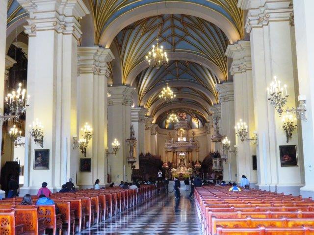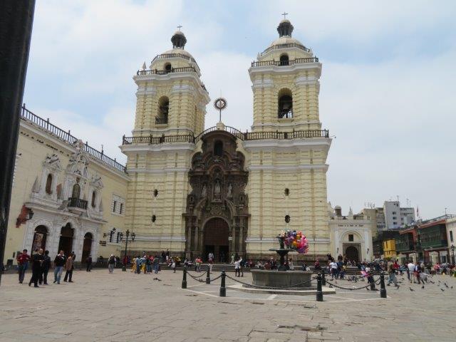one side of the plaza is the Cathedral of Lima, which houses the
