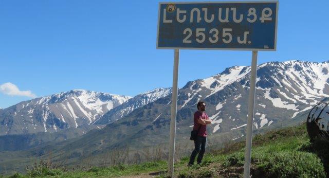 We travel through the Zangezour Mountains enjoying breathtaking views and a brief visit to the town of Meghri. At Goris (pics) we inspect troglodyte dwellings in the surrounding peaks before being welcomed with a hearty dinner and overnight at our hotel. In Iran, I just couldn't get the currency and its conversion values. They called them riyals, and a million of them was about 13 USD. Counting the 0s (without the commas) on the notes never seemed to work right as some merchants used another currency name (tomas) and these needed a 0 removed from the 5 or 6 0s on the notes. A pile of hundreds of thousands would disappear very quickly. On the last night I entered a busy shop to buy an ice cream with the last of the Iranian notes and explained my intention - not knowing if I had enough to purchase the aforesaid item. The very kindly ice cream man apparently misunderstanding my dilemma and insisted on giving me the ice cream and not taking the last of my (Iranian) money. He wouldn't even let me put it in (what looked a bit like) a charity box. It was a laugh for the onlookers too, so, to maintain peace, I humbly thanked him left and bought a hand full of nuts with the cash a another shop. Nice ice cream though. After the the long, tedious boarder crossing formalities were completed the ladies removed their scarves. The border we crossed was clearly identified with a significant river, military buildings and a fence. Officials at the crossing were stern and unfriendly. We walked across to a new driver, guide and more roomy new vehicle. Soon one learned the people of Armenia are certainly very different with different background, religions, language, food, politics, architecture, economy and body features. Lunch was refreshingly different and some of us enjoyed with our first a glass of beer. Had a quick look at byeoil site for the first time in 10 days and that too was a thrill. Unfortunately the photos are unable to portray the grandeur of the ever changing landscapes.